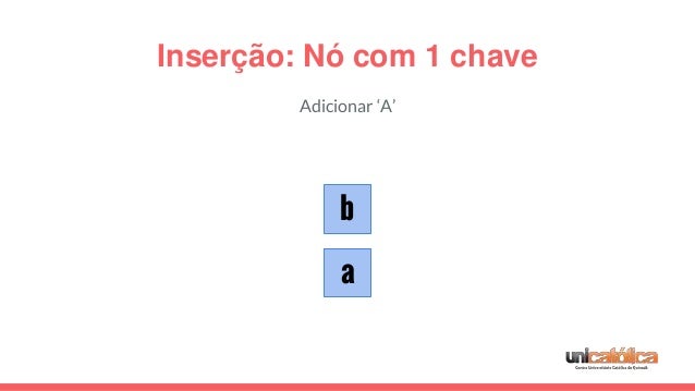- 10. Inserção: Nó com 1 chave b Adicionar ‘A’ a