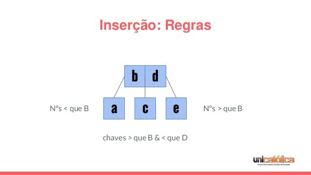 - 19. Inserção: Regras ca b d e Nºs > que BNºs < que B chaves > que B & < que D
