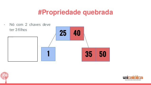 - 33. #Propriedade quebrada 1 4025 5035 - Nó com 2 chaves deve ter 3 filhos