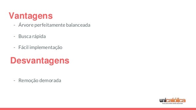 - 4. Vantagens - Árvore perfeitamente balanceada - Busca rápida - Fácil implementação - Remoção demorada Desvantagens