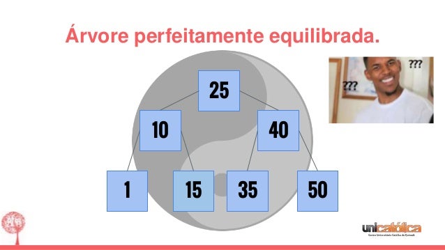 - 41. Árvore perfeitamente equilibrada. 1 35 25 50 40 15 10