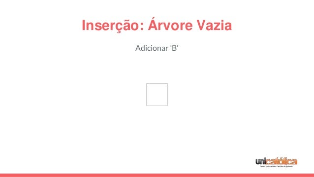 - 8. Inserção: Árvore Vazia Adicionar ‘B’
