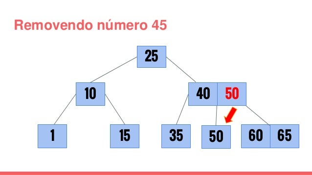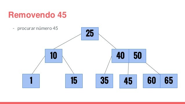 - 82. Removendo 45 - procurar número 45 1 35 25 60 10 6545 40 50 15